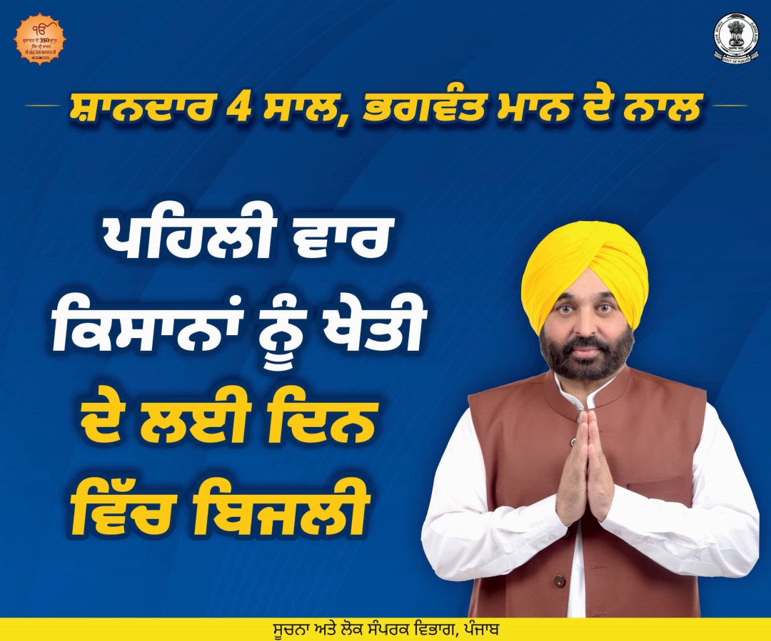 ਮੁੱਖ ਮੰਤਰੀ ਭਗਵੰਤ ਸਿੰਘ ਮਾਨ ਦੀ ਅਗਵਾਈ ਹੇਠ ਪੰਜਾਬ ਵਿੱਚ ਆਮ ਆਦਮੀ ਪਾਰਟੀ (ਆਪ) ਦੀ ਸਰਕਾਰ...
