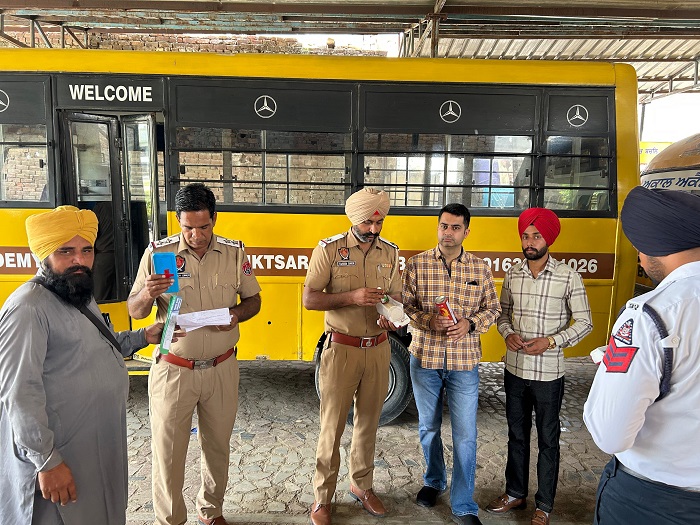 ਡਿਪਟੀ ਕਮਿਸ਼ਨਰ ਸ੍ਰੀ ਮੁਕਤਸਰ ਸਾਹਿਬ ਸ੍ਰੀ ਅਭਿਜੀਤ ਕਪਲਿਸ਼ (ਆਈ ਏ ਐਸ) ਅਤੇ ਸੀਨੀਅਰ ਕਪਤਾਨ ਪੁਲਿਸ ਡਾ : ਅਖਿਲ ਚੋਧਰੀ (ਆਈ ਪੀ ਐਸ) ਦੇ ਸਾਂਝੇ ਉਪਰਾਲੇ ਅਧੀਨ ਸੇਫ ਸਕੂਲ ਵਾਹਨ ਪਾਲਸੀ ਨੂੰ ਸਖਤੀ ਨਾਲ ਲਾਗੂ ਕਰਨ ਲਈ ਆਕਾਲ ਅਕੈਡਮੀ ਸਕੂਲ ਅਤੇ ਡੀ.ਏ.ਵੀ ਪਬਲਿਕ ਸਕੂਲ ਵਿਖੇ ਸਕੂਲੀ ਵਾਹਨਾਂ ਦੀ ਚੈਕਿੰਗ ਕੀਤੀ ਗਈ ਅਤੇ 11 ਸਕੂਲੀ ਬੱਸਾਂ ਦੇ ਚਲਾਨ ਕੱਟੇ ਗਏ।