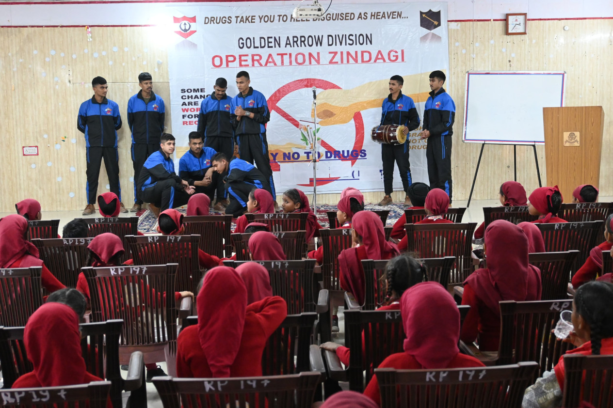 ਗੋਲਡਨ ਐਰੋ ਡਿਵਿਜ਼ਨ ਵਲੋਂ ਸਕੂਲ ਆਫ਼ ਹੈਪੀਨੈੱਸ ਜੰਗ ਫਿਰੋਜਪੁਰ-1 ਵਿੱਚ ਨਸ਼ਾ ਵਿਰੋਧੀ ਜਾਗਰੂਕਤਾ ਸਭਾ ਆਯੋਜਿਤ