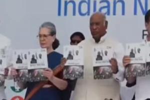 New Delhi,05 April,2024,(Azad Soch News):- ਲੋਕ ਸਭਾ ਚੋਣਾਂ (Lok Sabha Elections) ਦੇ ਮੱਦੇਨਜ਼ਰ ਕਾਂਗਰਸ ਪਾਰਟੀ ਨੇ ਸ਼ੁੱਕਰਵਾਰ ਨੂੰ ਨਿਆ ਪੱਤਰ ਦੇ ਨਾਮ ਉਤੇ ਇੱਕ ਚੋਣ ਮਨੋਰਥ ਪੱਤਰ ਜਾਰੀ ਕੀਤਾ,ਜਿਸ ਦੌਰਾਨ ਰਾਹੁਲ ਗਾਂਧੀ, ਸੋਨੀਆ ਗਾਂਧੀ,ਕਾਂਗਰਸ ਪਾਰਟੀ ਦੇ ਰਾਸ਼ਟਰੀ ਪ੍ਰਧਾਨ ਮਲਿਕਾਅਰਜੁਨ ਖੜਗੇ...