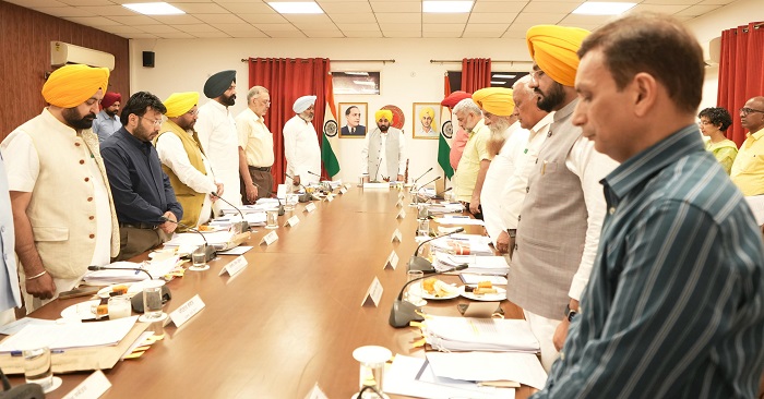 ਮੁੱਖ ਮੰਤਰੀ ਭਗਵੰਤ ਸਿੰਘ ਮਾਨ ਦੀ ਅਗਵਾਈ ਹੇਠ ਪੰਜਾਬ ਮੰਤਰੀ ਮੰਡਲ ਨੇ ਮੀਟਿੰਗ ਦੀ ਸ਼ੁਰੂਆਤ ਵਿੱਚ ਪਹਿਲਗਾਮ (ਜੰਮੂ ਤੇ ਕਸ਼ਮੀਰ) ਵਿੱਚ ਹੋਏ ਦਹਿਸ਼ਤੀ ਹਮਲੇ ਦੇ ਸ਼ਹੀਦਾਂ ਨੂੰ ਸ਼ਰਧਾਂਜਲੀ ਭੇਟ ਕੀਤੀ।